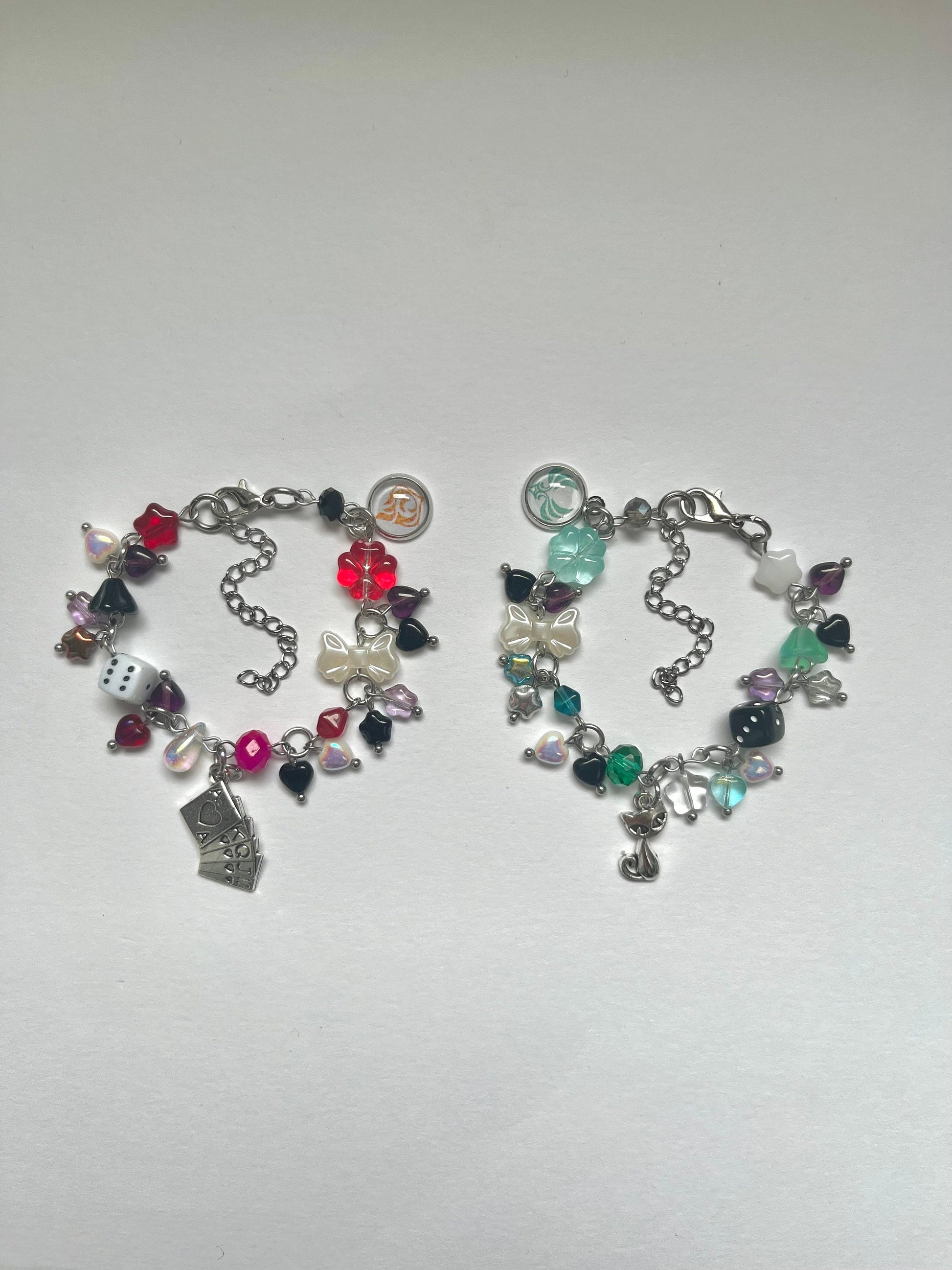 Charm bracelets inspired by The House of the Hearth Siblings Lyney, Lynette and Freminet from Genshin Impact.